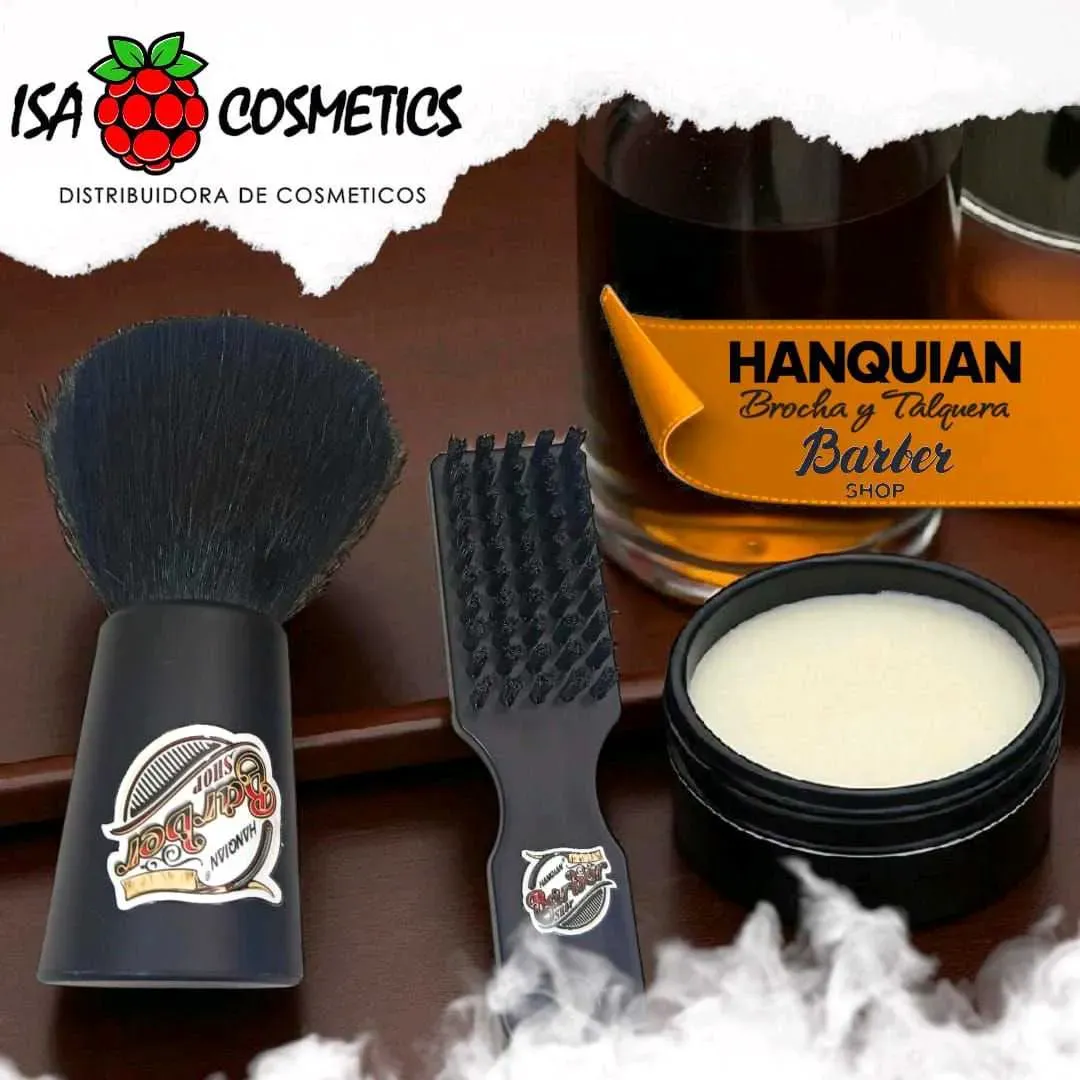 Hanquian set de brocha Talquera y cepillo barbero